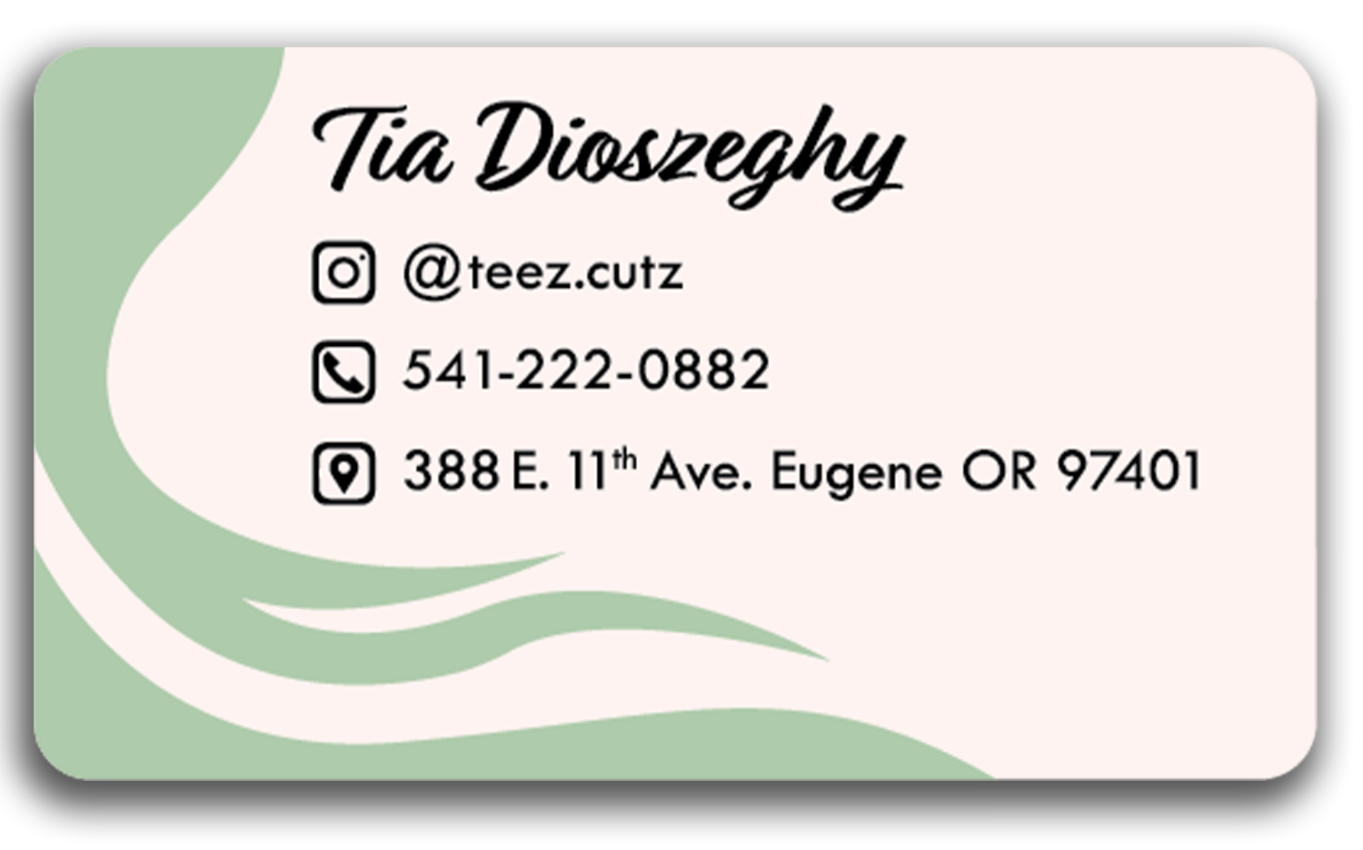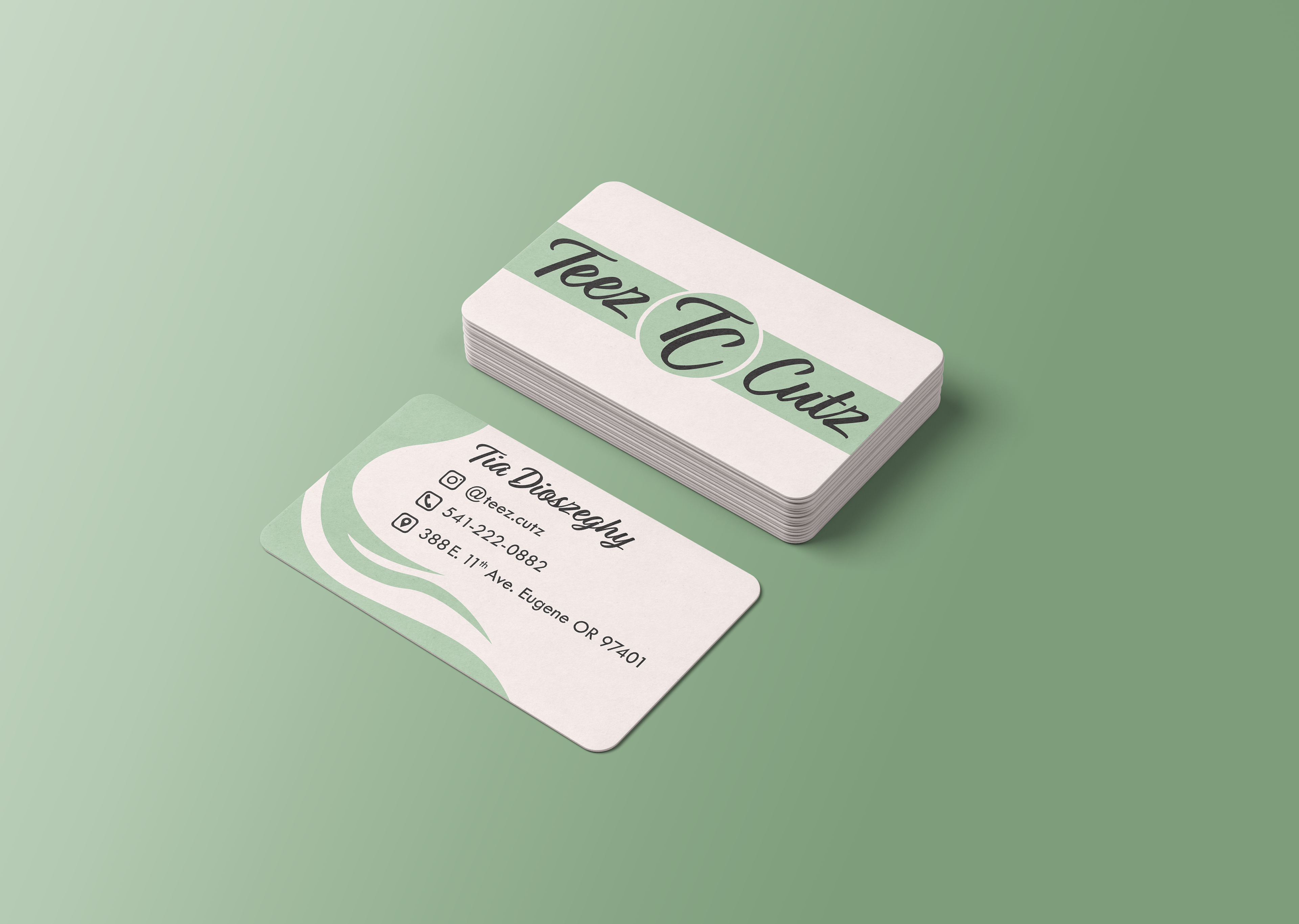 Business card design for Teez Cutz, an independent beautician.